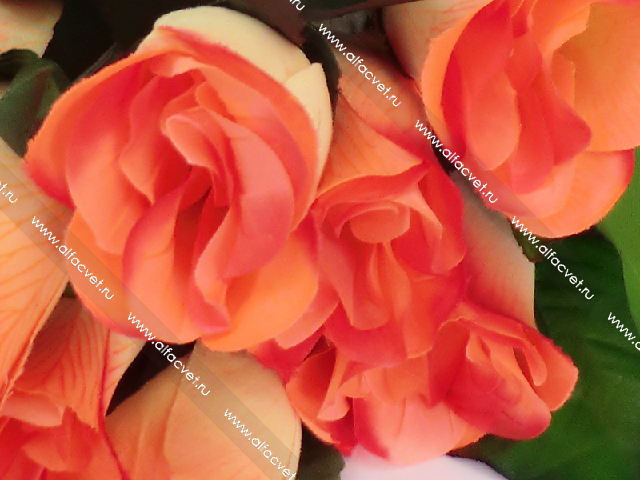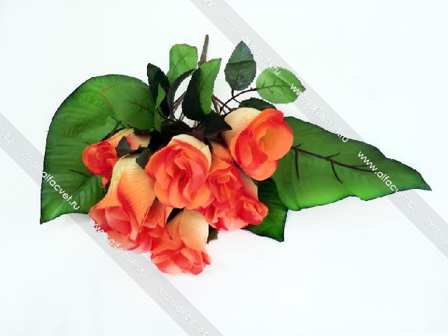 • искусственные цветы букет роз с крупными листьями цвета красный 4