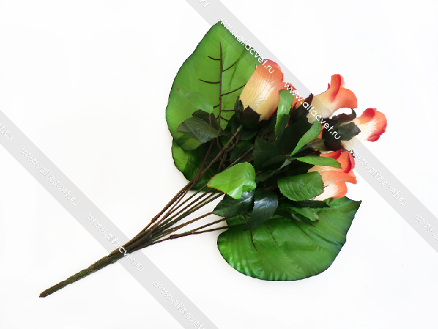• искусственные цветы букет роз с крупными листьями цвета желтый 1