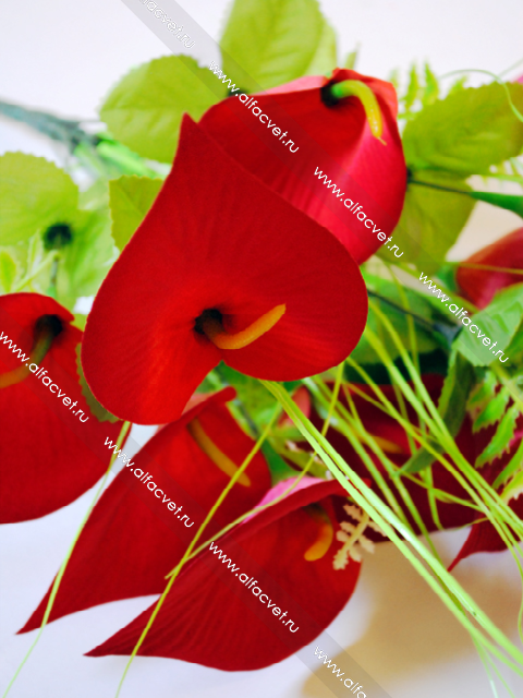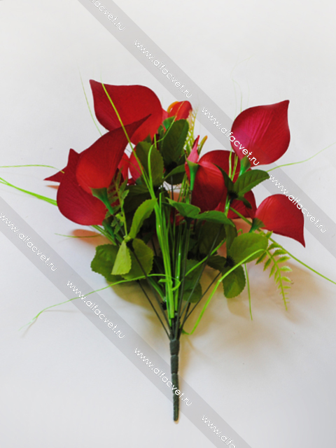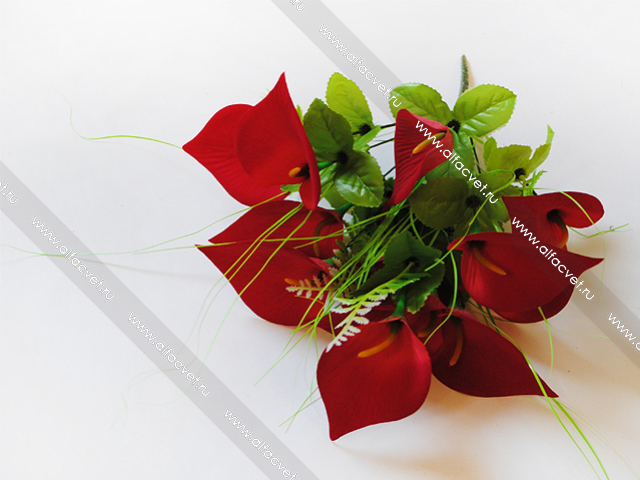 • искусственные цветы букет каллы цвета красный с белым 21
